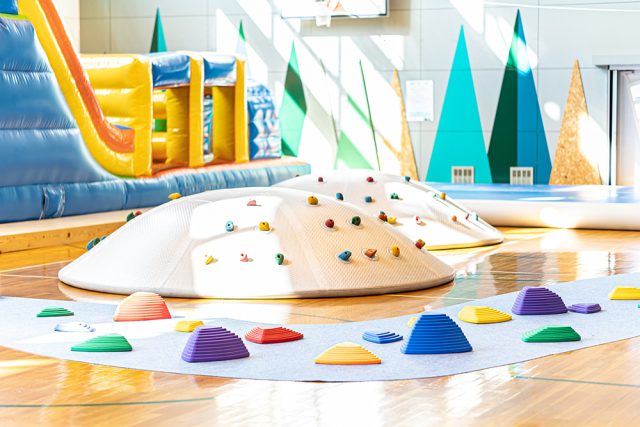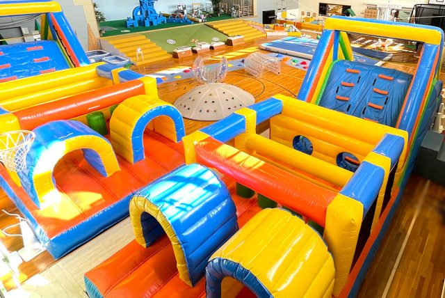 すべり台の”アスレチックふわふわ”や、トランポリンマットの”エアトラック”など、