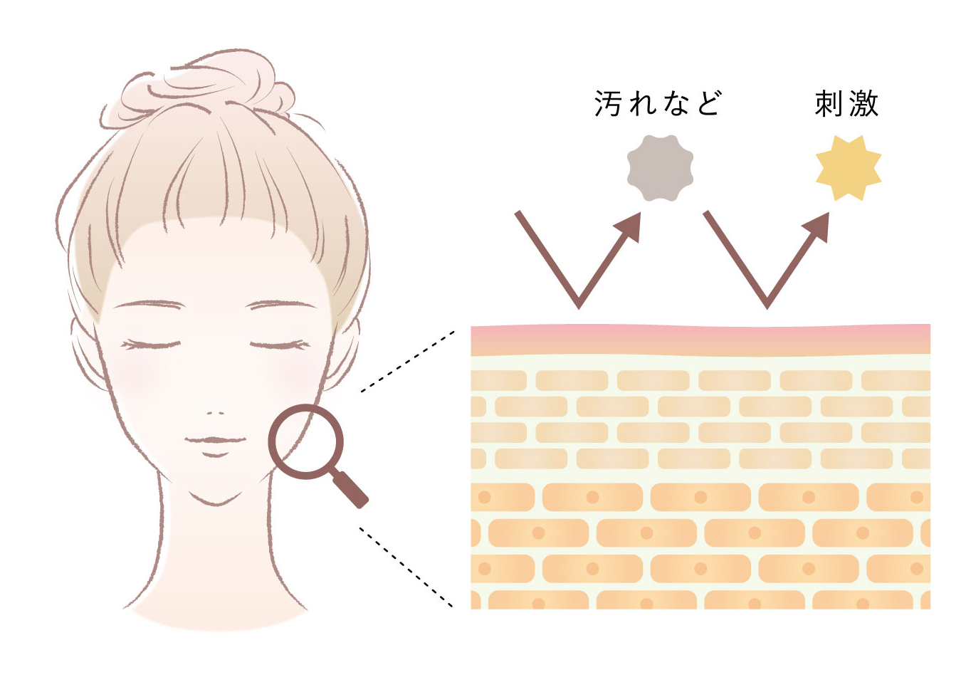 肌は外から体を守ってくれるバリアの役割を担っています。そのサイズはというと、厚さは平均約2㎜(脂肪を除く)、面積は成人で平均約1.6㎡(畳一枚くらい)、重さは皮下組織も含めると体重の約16%にも及ぶと言われています。実は、臓器としては、最も大きいものだと考えられます。だから、肌が常にいい状態であることは、美容という視点からだけでなく、健康という視点からも大切です。年齢や肌質に適したケアをしていくこと、そして清潔に保ち、保湿していくことが、肌のベストコンディションを保つために最も大切なことだと考えています。