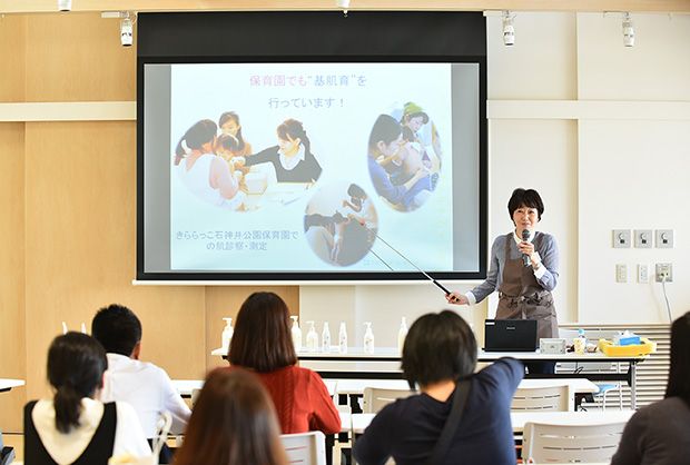 ナチュラルサイエンスでは、産科での母親学級や沐浴指導をはじめ、保育園でも子どものためのスキンケア指導を行っています。また、大人の正しいスキンケア方法をお伝えするセミナーも随時開催しています。