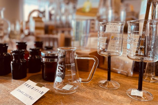 誰もが一度は目にしたことのあるビーカー、試験管、薬匙、メスシリンダーなどを販売中。