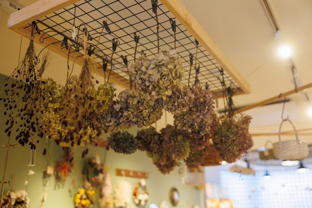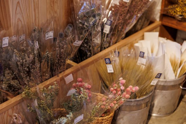北海道内のドライフラワーや、ナチュの森内のナチュラルガーデンで育てた植物を使ったドライフラワーが充実。