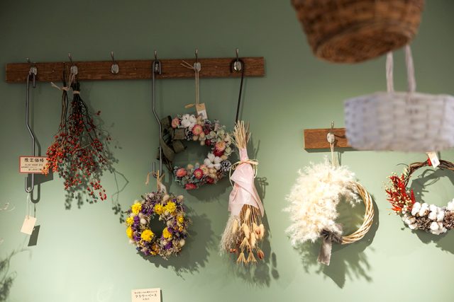 ナチュの森のガーデナーが手がけるスワッグやリース。四季折々の植物を使ったアレンジは、