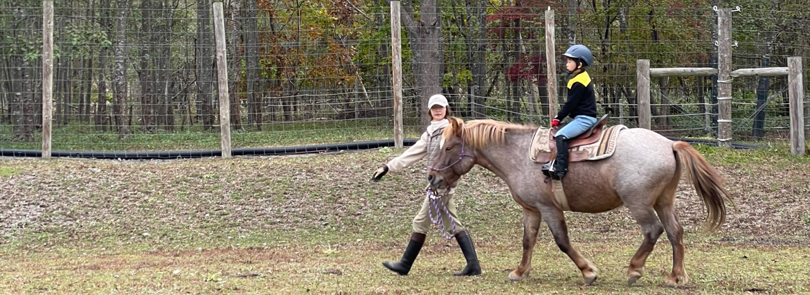 トレーナがひく馬にのる、乗馬体験。 馬の背からの輪投げコーナーチャレンジも。(※全員ではなく乗っている子の様子を見て判断) - ⑤鞍を外して片づけ