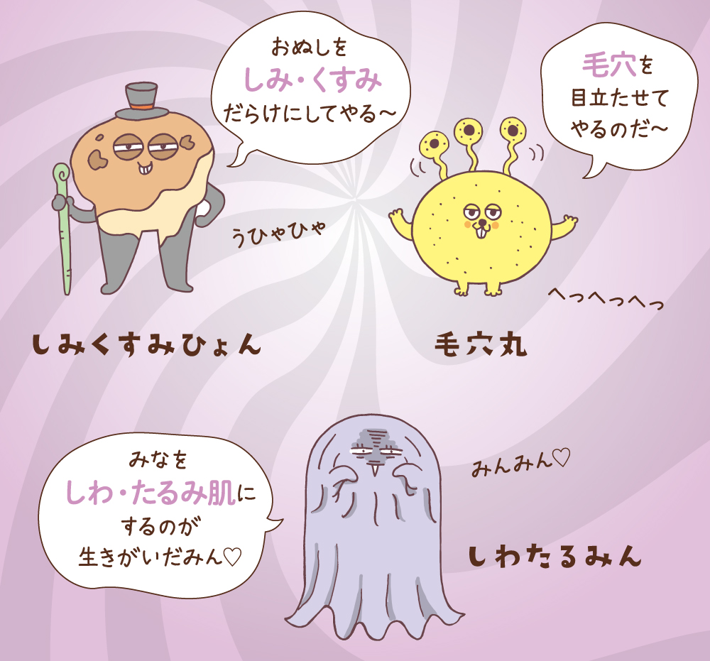 キレイに目覚め進化したハダ美と一緒に、3大妖怪たちを倒して、 いつまでも若々しい美肌を手に入れましょう♪