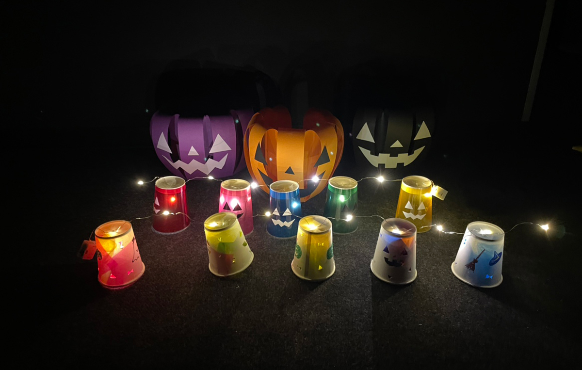 紙コップとLEDライトでかわいいハロウィンランタンと