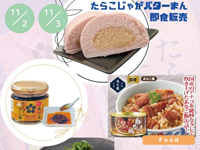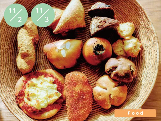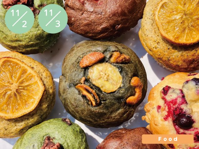 マフィンや焼き菓子・クレープ、パン・スープや、おにぎり・やきとり・蒸かし饅頭、と心躍るメニューが勢揃い。