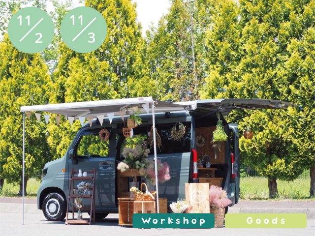 いつもナチュの森で体験できるワークショップはそのままに、各地からワクワクできる「モノづくり」のワークショップが集結。フラワーリースやフラワーアレンジメント、シルクスクリーンや工作キットなどなど。